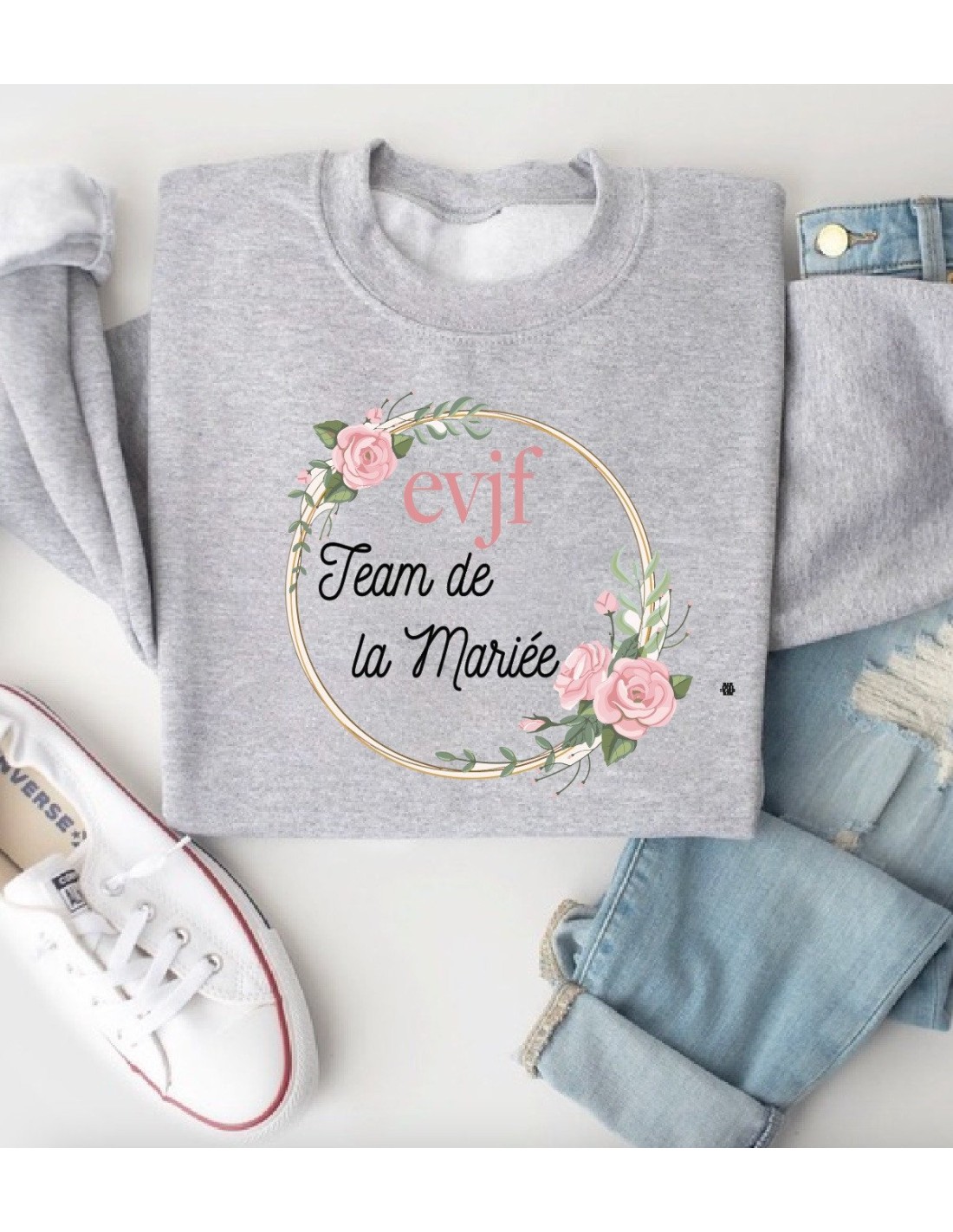 T-shirt Femme Sweat Femme Evjf Team de la Mariee Couronne de Rose – Style & Douceur Imprimé en France