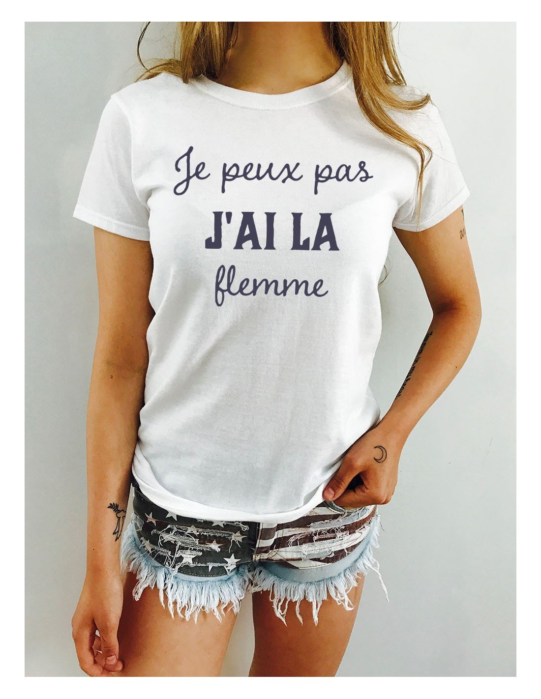 T-shirt Femme T-shirt Femme Je Peux Pas j Aila Flemme – Style & Douceur Imprimé en France