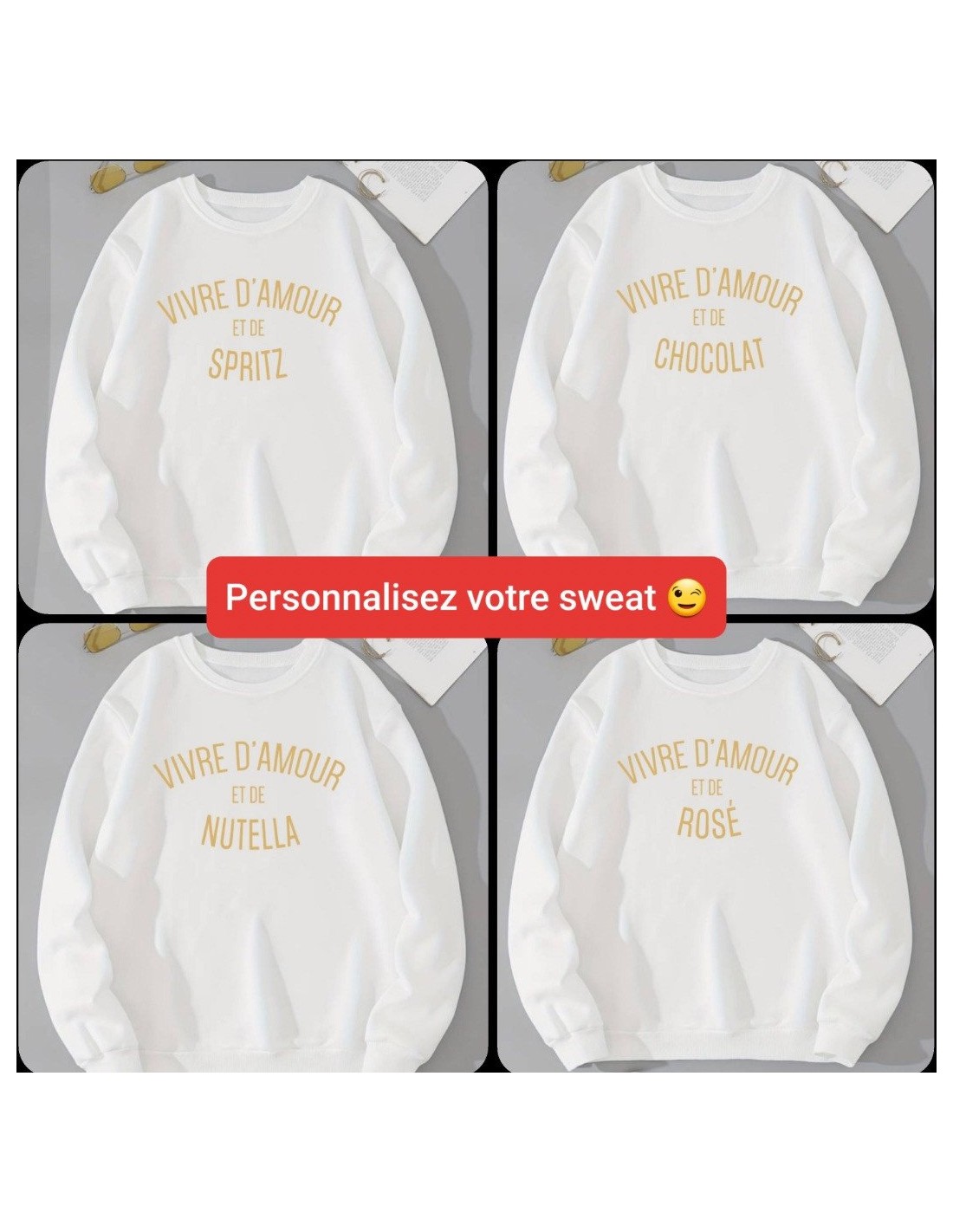 Sweat Femme Sweat Blanc Femme Vivre d Amour et de a Personnaliser – Style & Douceur Imprimé en France