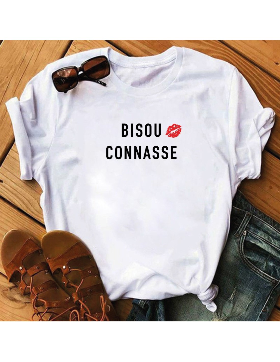 T-shirt Femme T-shirt Femme Bisou Connasse – Style & Douceur Imprimé en France