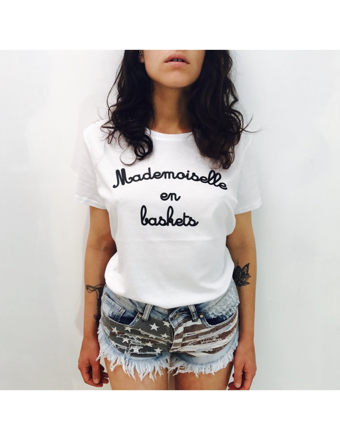 - T-shirt femme T-shirt femme mademoiselle en baskets