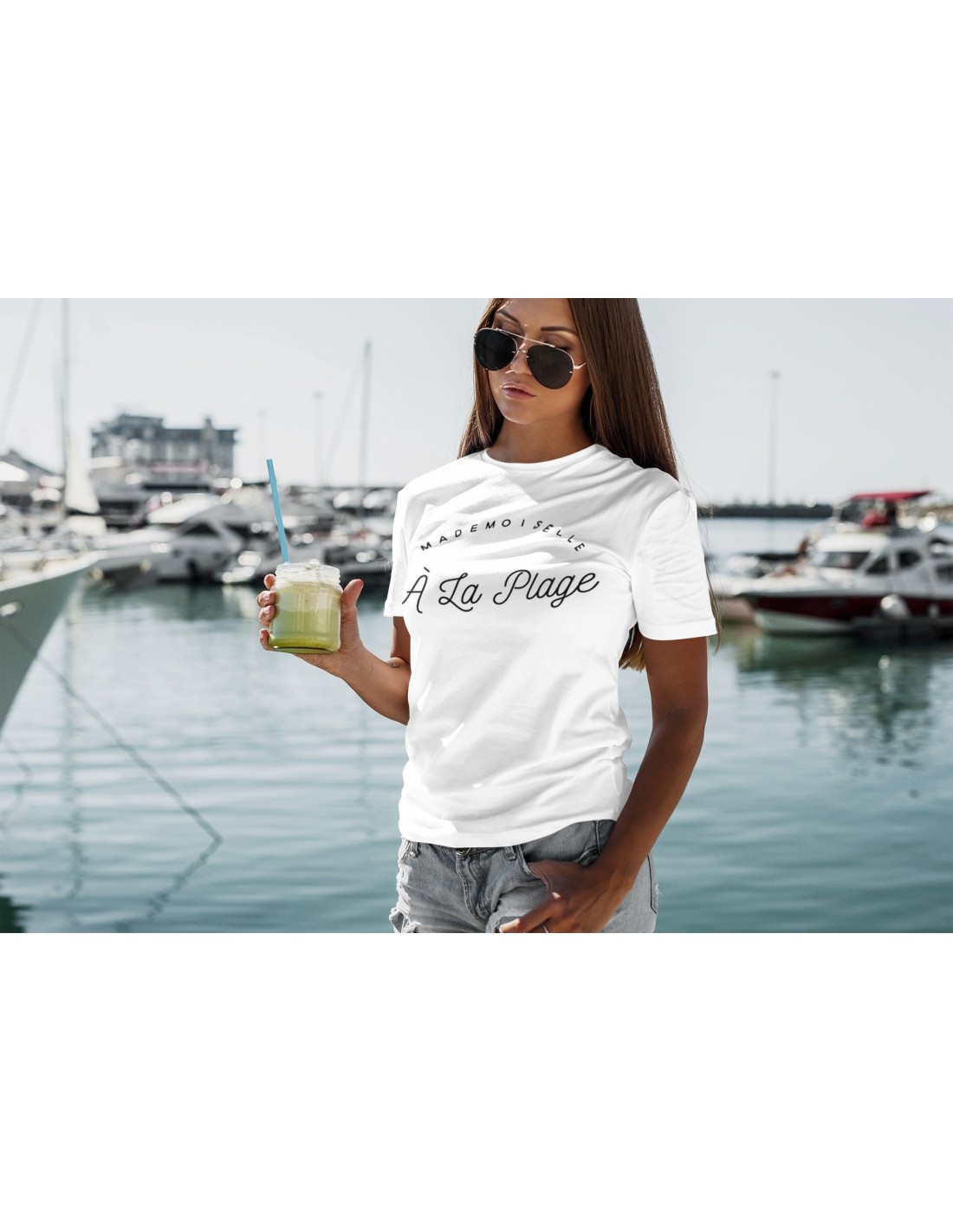 T-shirt Femme T-shirt Femme Mademoiselle a la Plage – Style & Douceur Imprimé en France